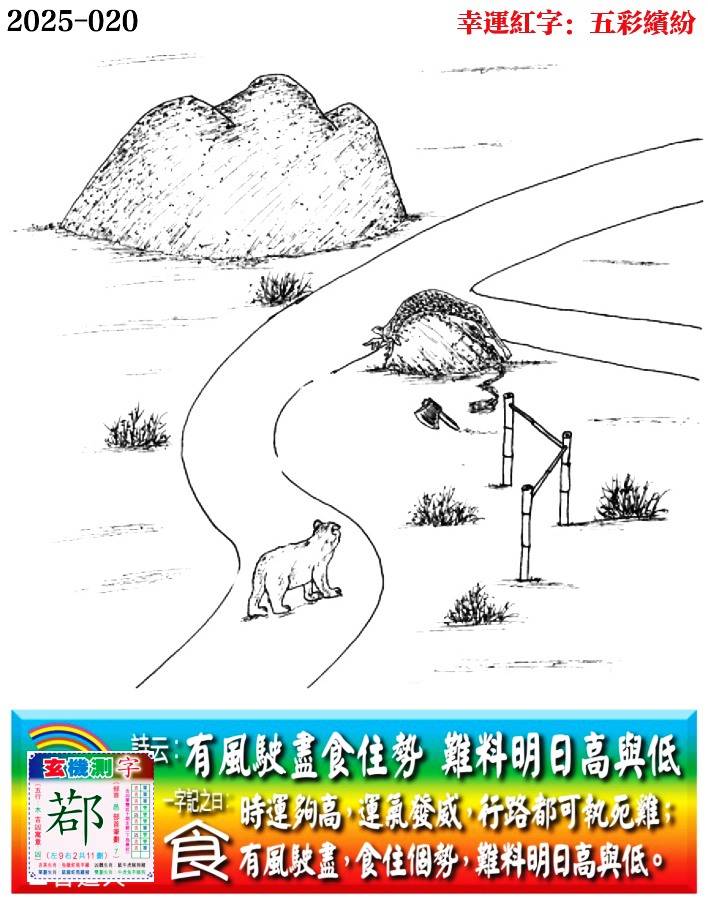 020期老版跑狗一字記之曰:【食】 詩雲:有風駛盡食住勢,難料明日高與低。